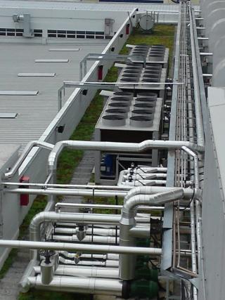 Sistema Água Gelada. Capacidade total Resfriadores de Líquido 510 TR. Espera para termoacumulação. Climatizadores 670 TR, Automação A.C. 460 pontos. AG para processo, terceário 90 TR